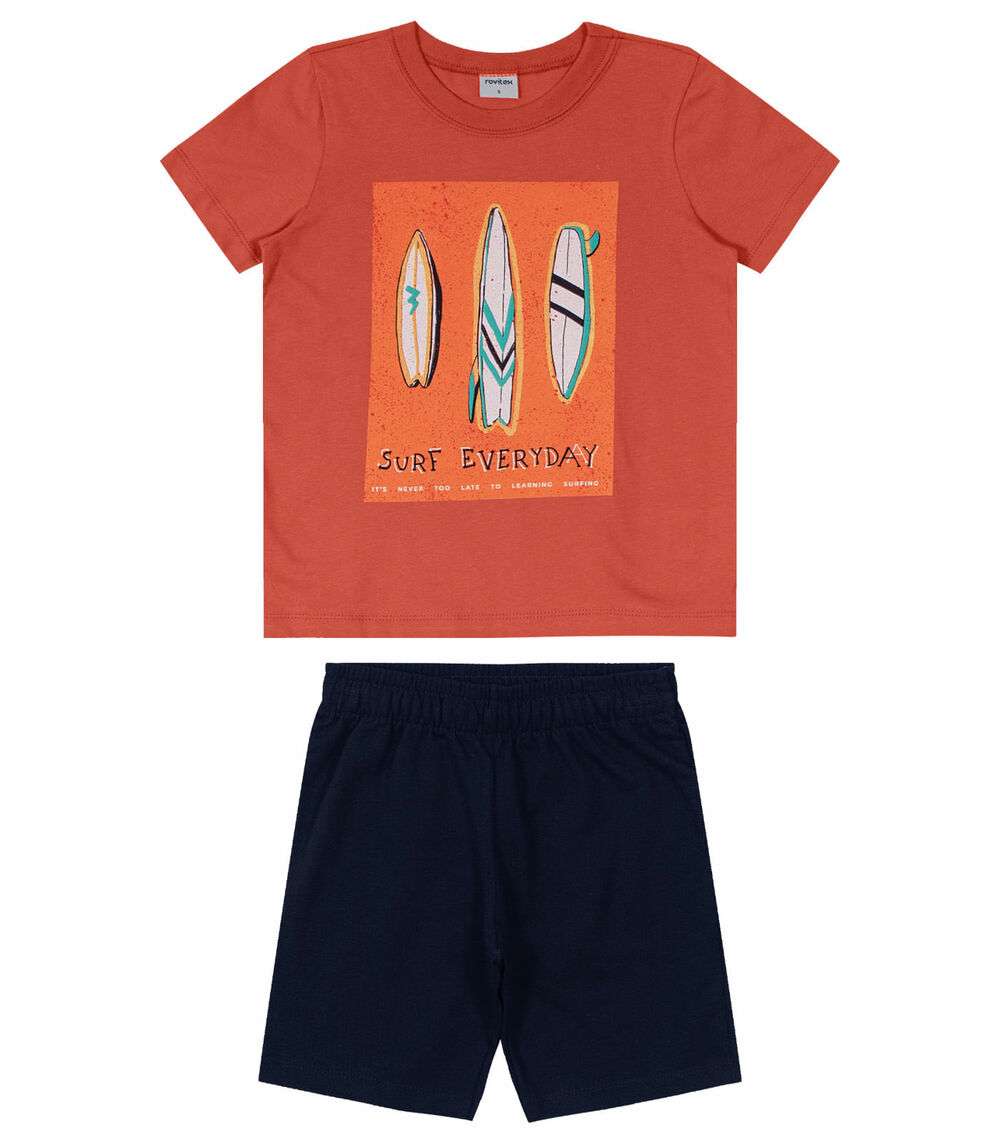 Conjunto Infantil Rovitex Kids. Desenvolvido em meia malha e moletinho basic, camiseta com estampa centralizada e bermuda com elástico na cintura. Ideal para dias de muitas brincadeiras ao ar livre.