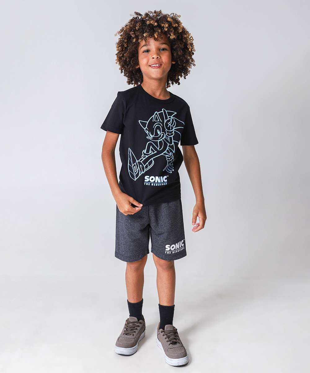 Conjunto Infantil Sonic Tam 4 a 10 Preto