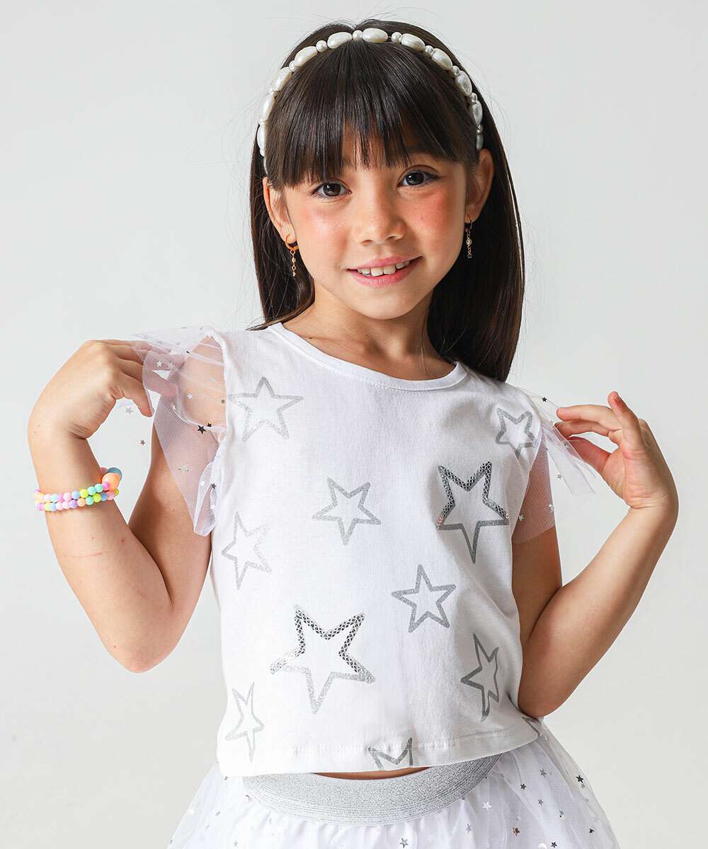 Conjunto Infantil Tule Estrelas Marisa Tam 4 a 10 Prata