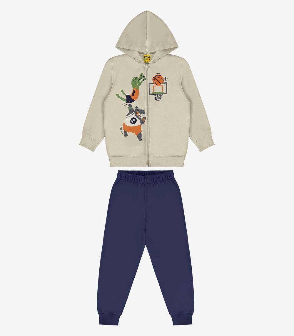 Conjunto Jaqueta Com Capuz E Calça Rovi Kids Bege