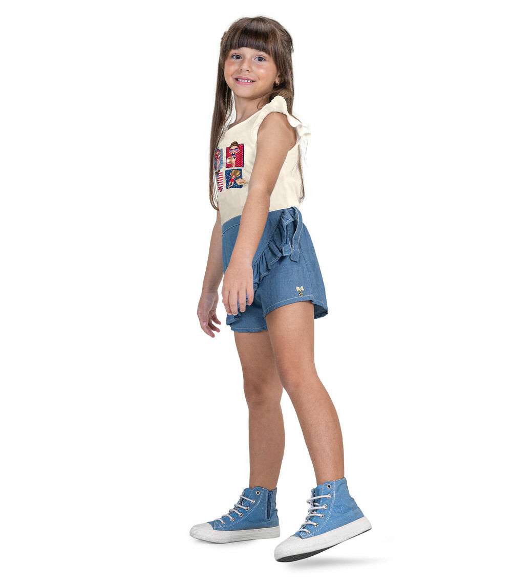 Conjunto Juvenil Blusa E Shorts Saia Trick Nick Bege