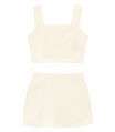 O Conjunto Juvenil Cropped e Shorts Saia Minty é confeccionado em moletinho gorgurinho, oferecendo um toque macio e confortável. O cropped regata apresenta um recorte duplo, conferindo um design moderno e estiloso. Já o shorts saia possui recortes com fios na diagonal e na horizontal, adicionando um detalhe visual interessante e contemporâneo. Ideal para criar looks casuais e fashionistas, esse conjunto combina praticidade e tendência, sendo perfeito para diversas ocasiões no dia a dia.