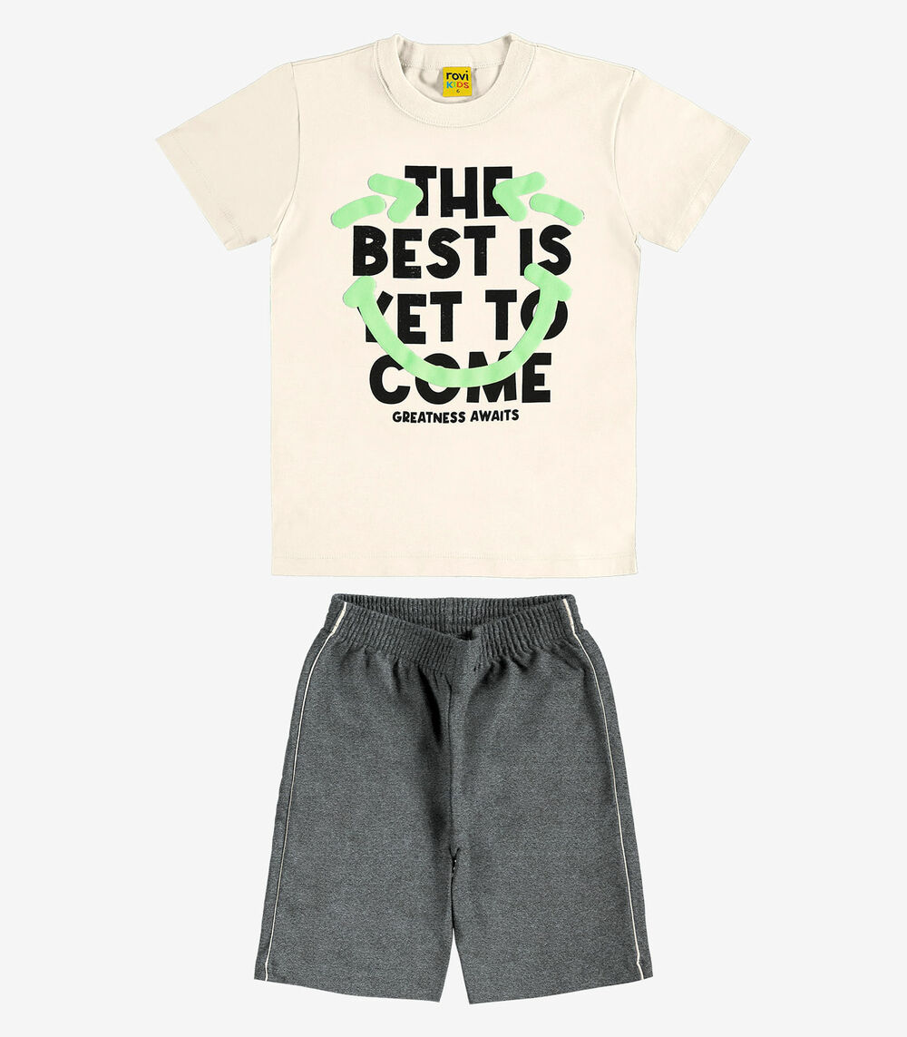 Conjunto Machão c Bermuda em Meia Malha Rovi Kids Bege