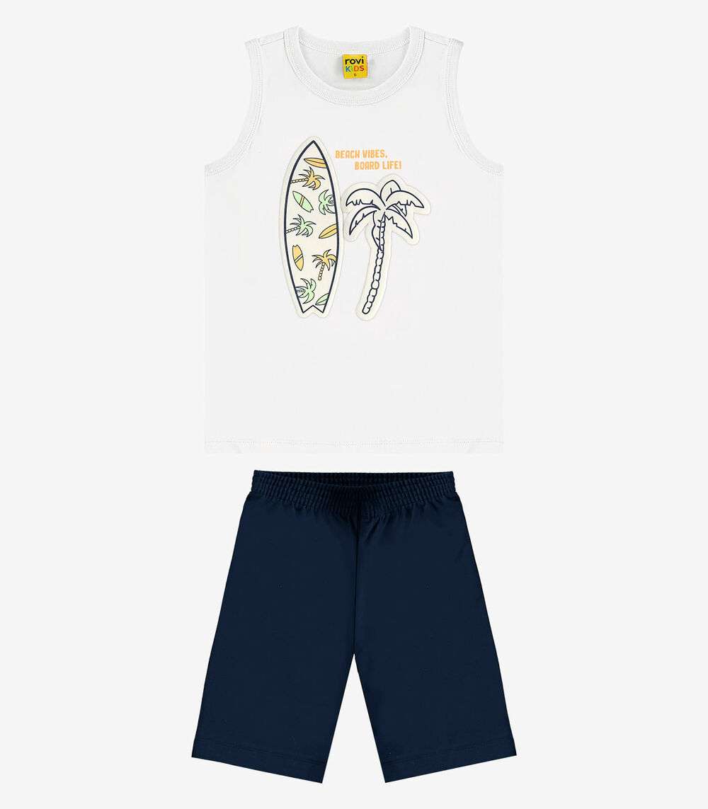 Conjunto Machão com Bermuda Meia Malha Rovi Kids Branco
