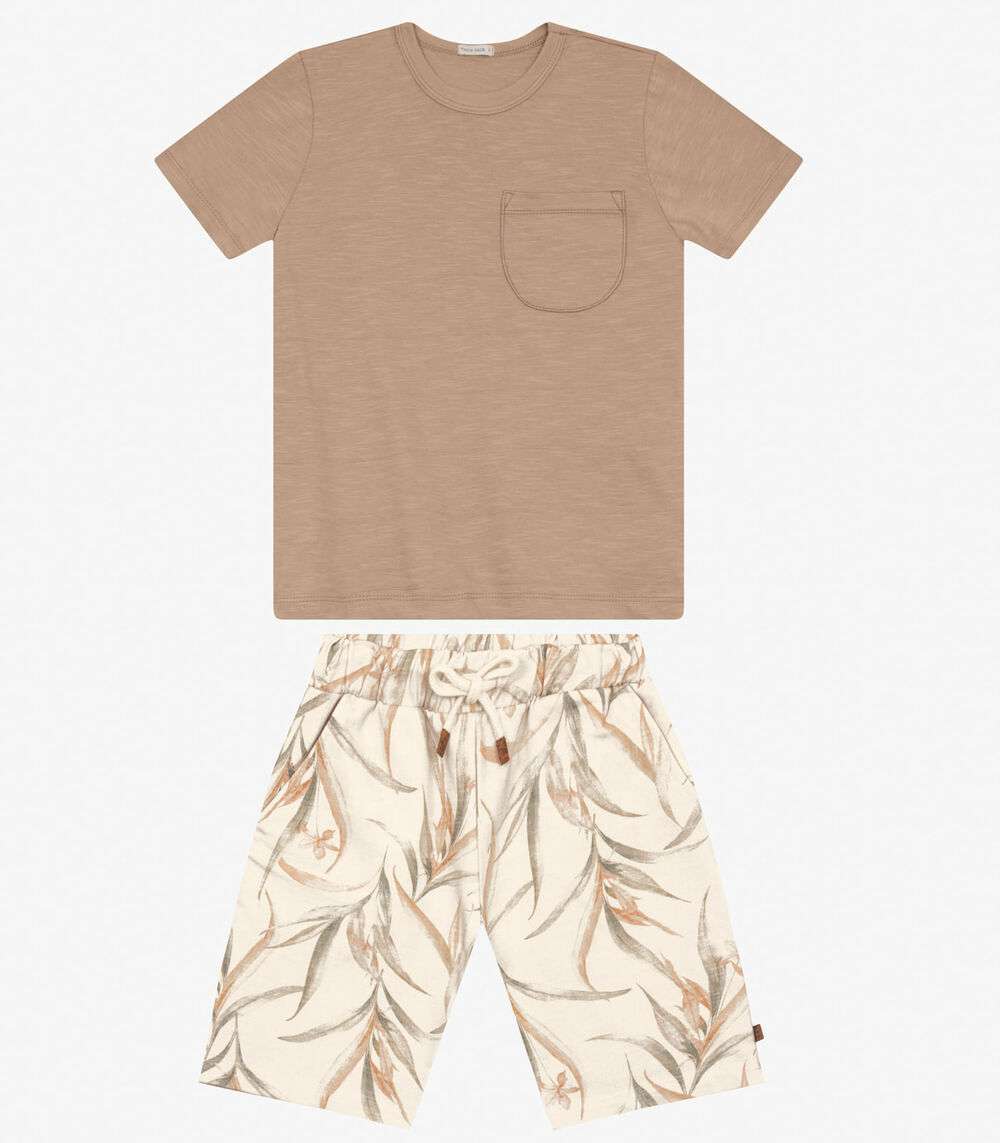 Conjunto Masculino Camiseta com Bermuda Trick Nick Marrom