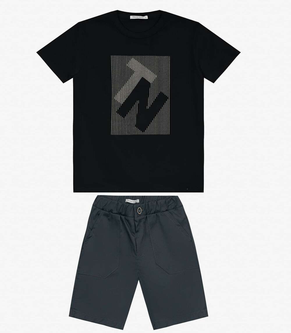 Conjunto Masculino Camiseta com Bermuda Trick Nick Preto