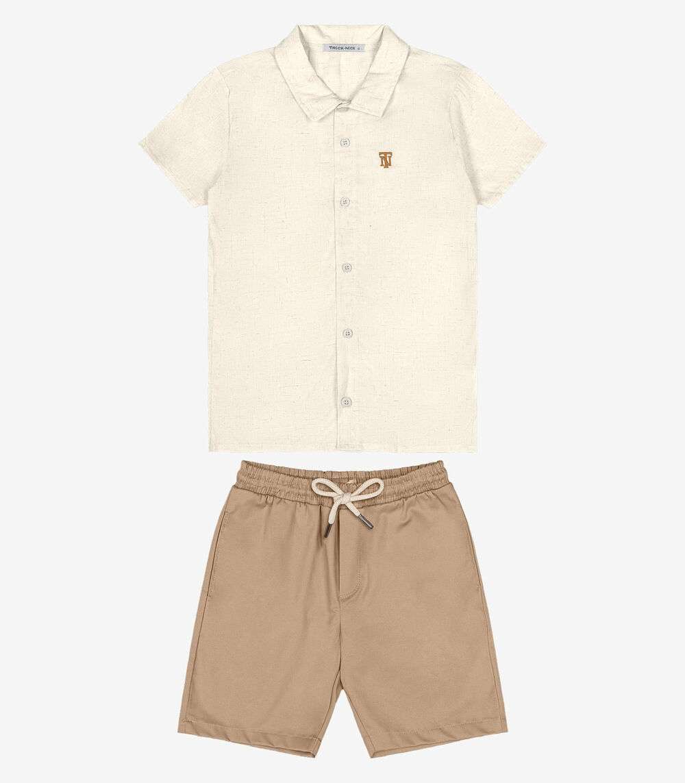 Conjunto Menino Camisa Com Bermuda Trick Nick Bege
