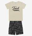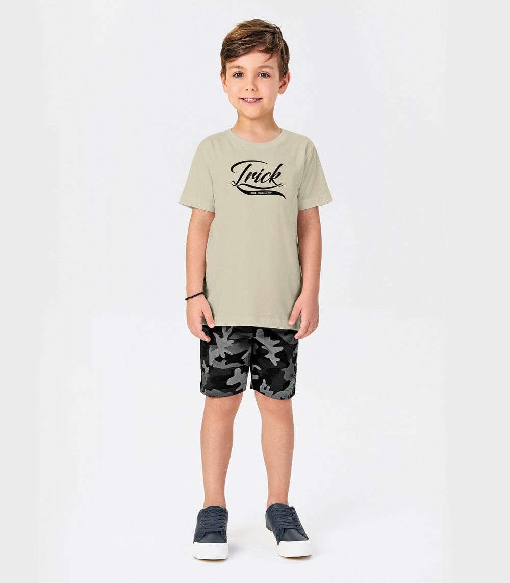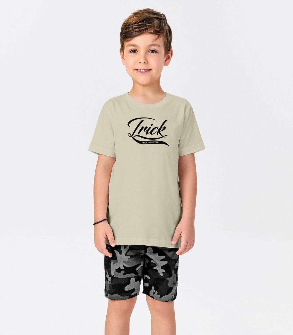 Conjunto Menino Camiseta Com Bermuda Trick Nick Bege