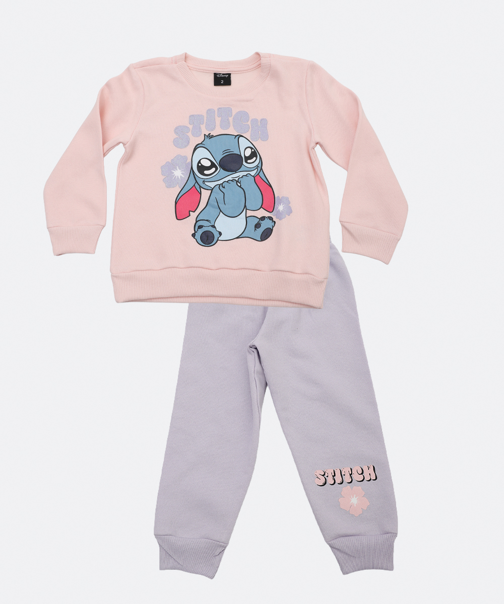 Conjunto Moletom Infantil Stitch Tam 1 a 3 Rosa