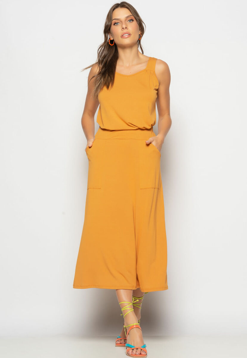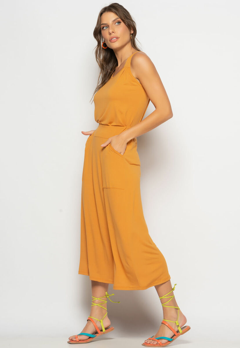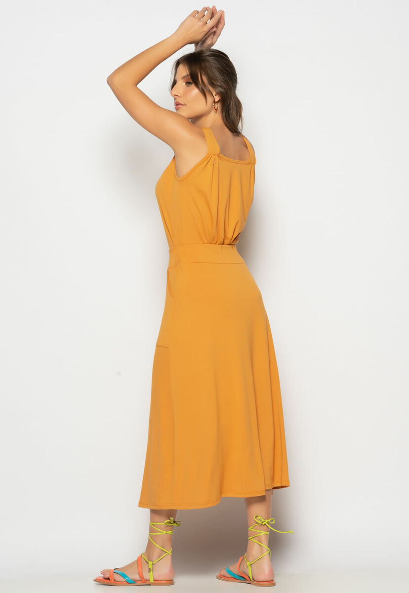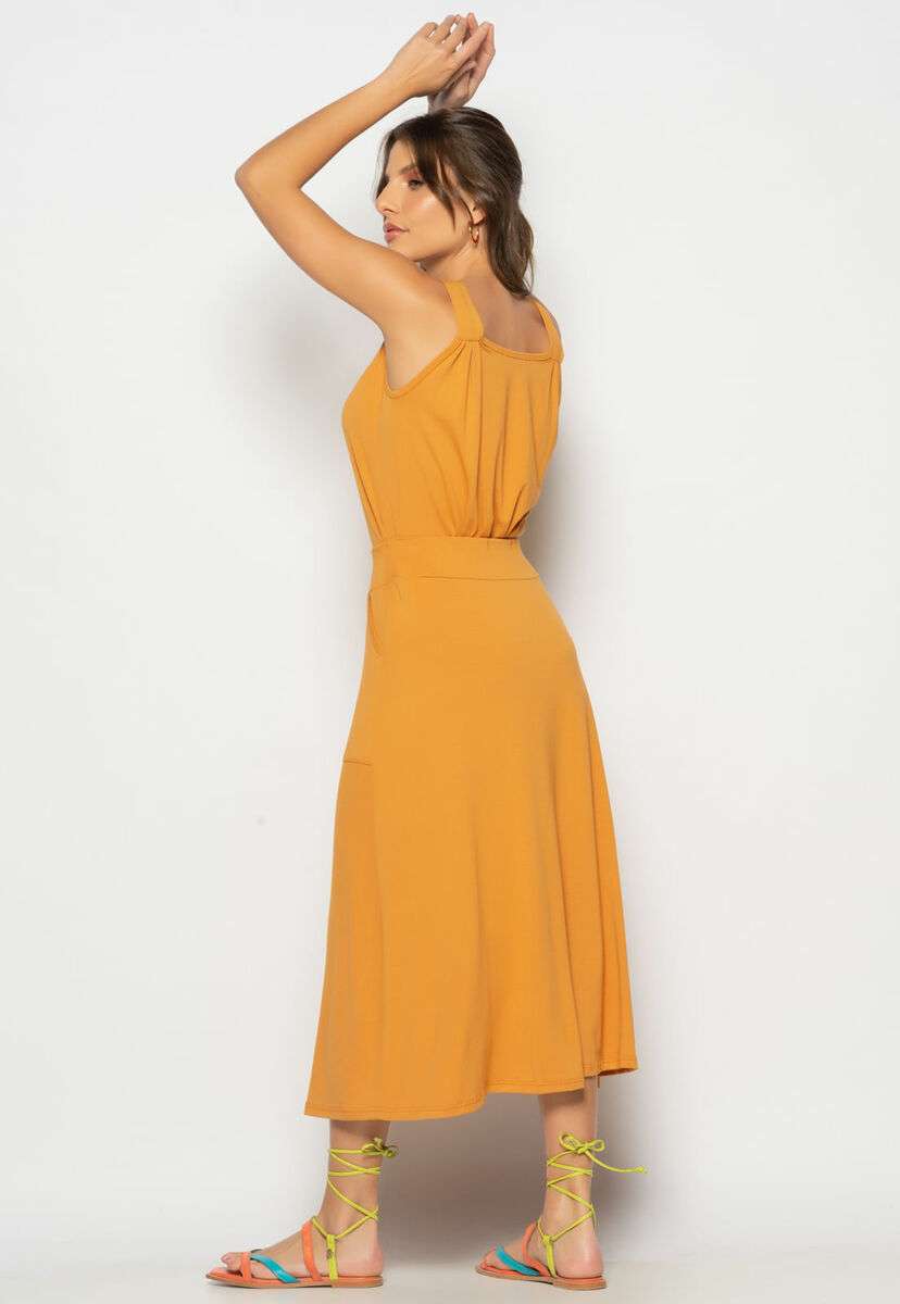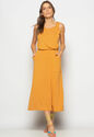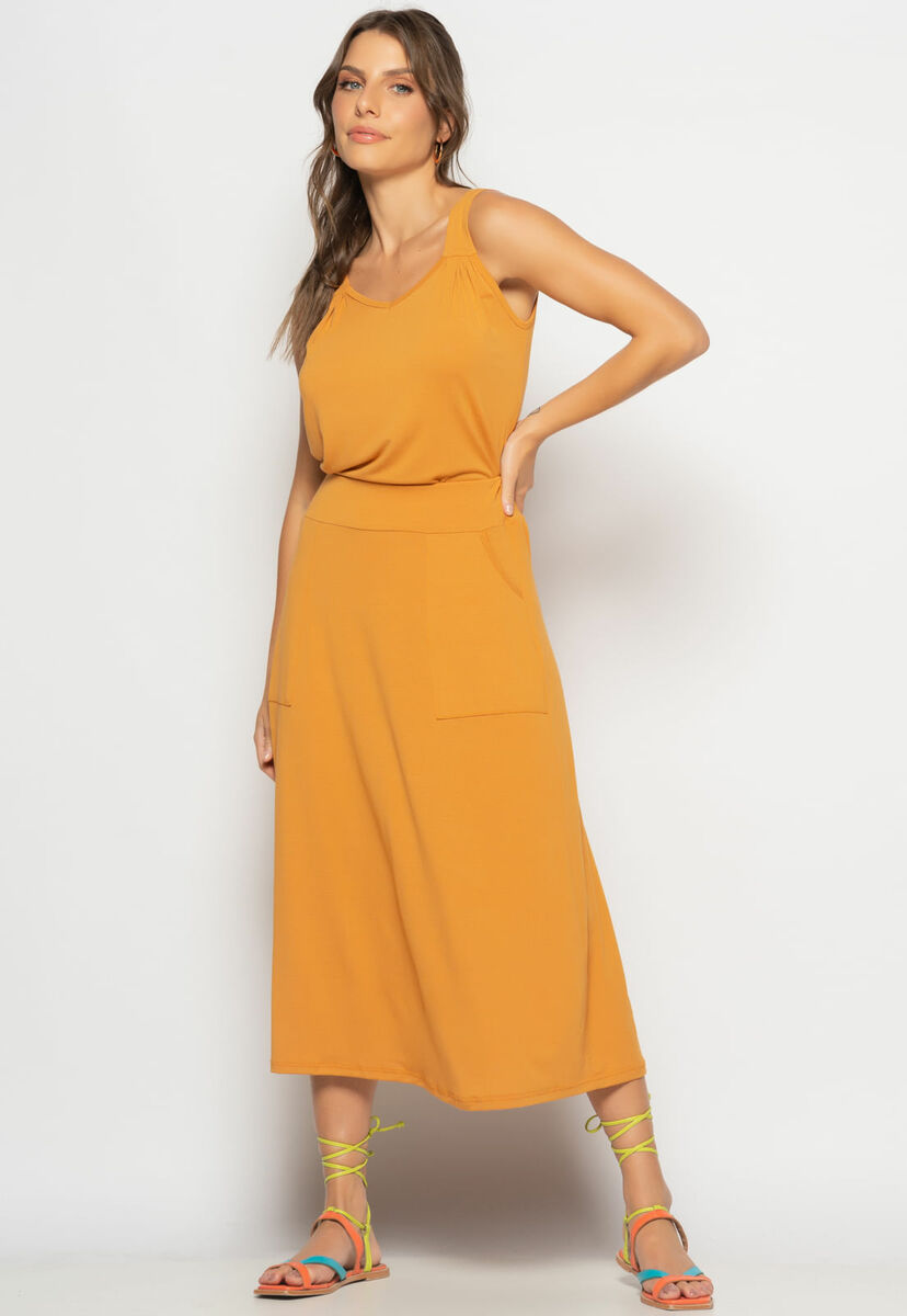 Conjunto Regata Drapeada e Saia Midi Malha Caramelo Salvatore