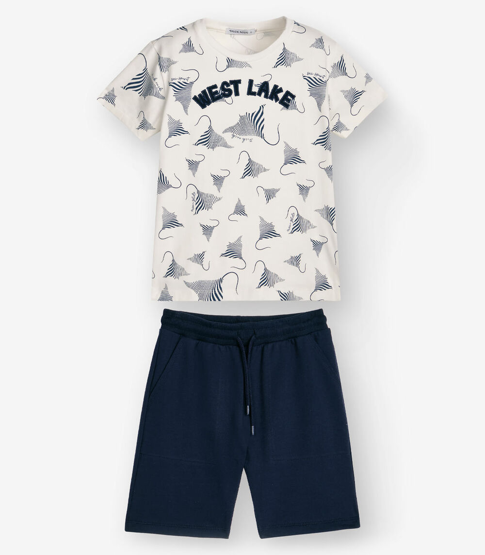 Conjuto Menino Trick Nick Camiseta Com Bermuda Bege