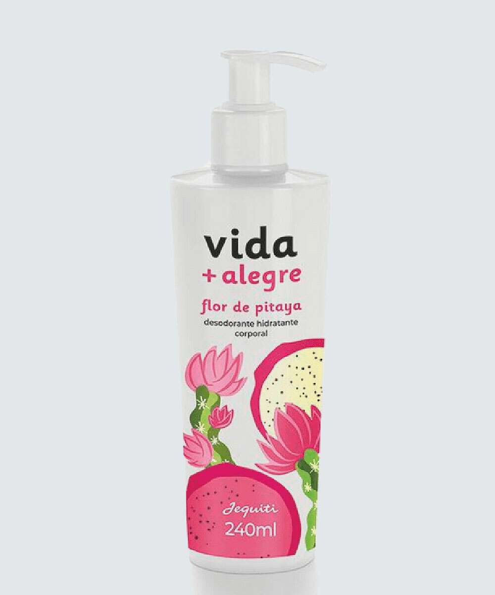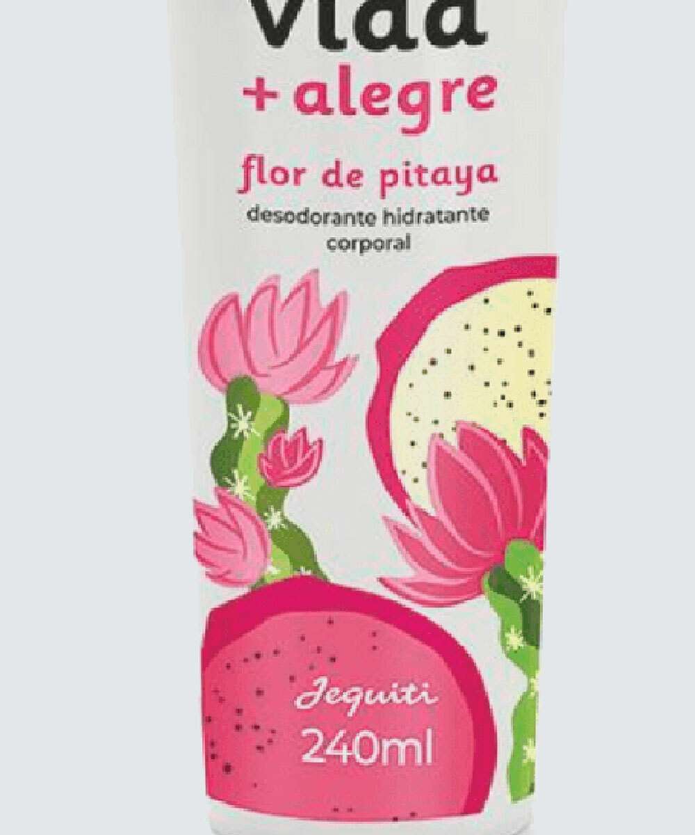 Desodorante Hidratante Corporal Alegre Flor Pitaya Jequiti de 250ml. Inspirada na cor vibrante da Pitaya, sua fragrância floral com facetas frutadas te inspiram a viver um momento de autocuidado mais alegre. O Desodorante Hidratante Corporal Jequiti Vida + Alegre Flor de Pitaya possui textura suave e aveludada para hidratar sua pele e deixar um toque macio e perfumado.