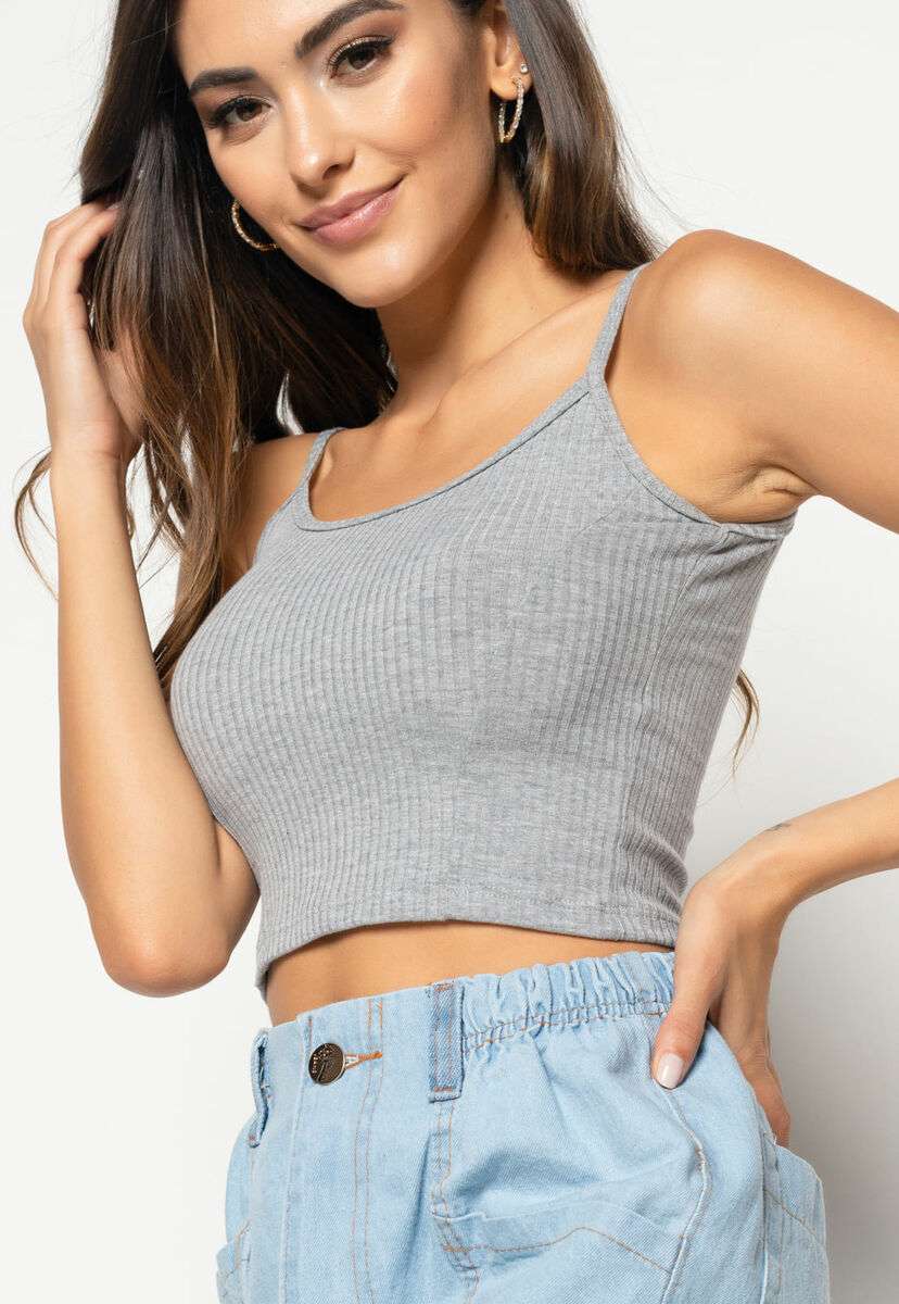 Cropped Alça Fina Canelado Mescla Salvatore Fashion