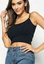 Cropped Alça Fina Canelado Preto Salvatore Fashion