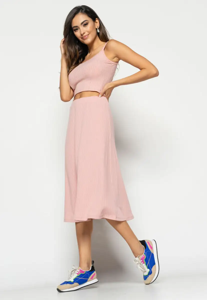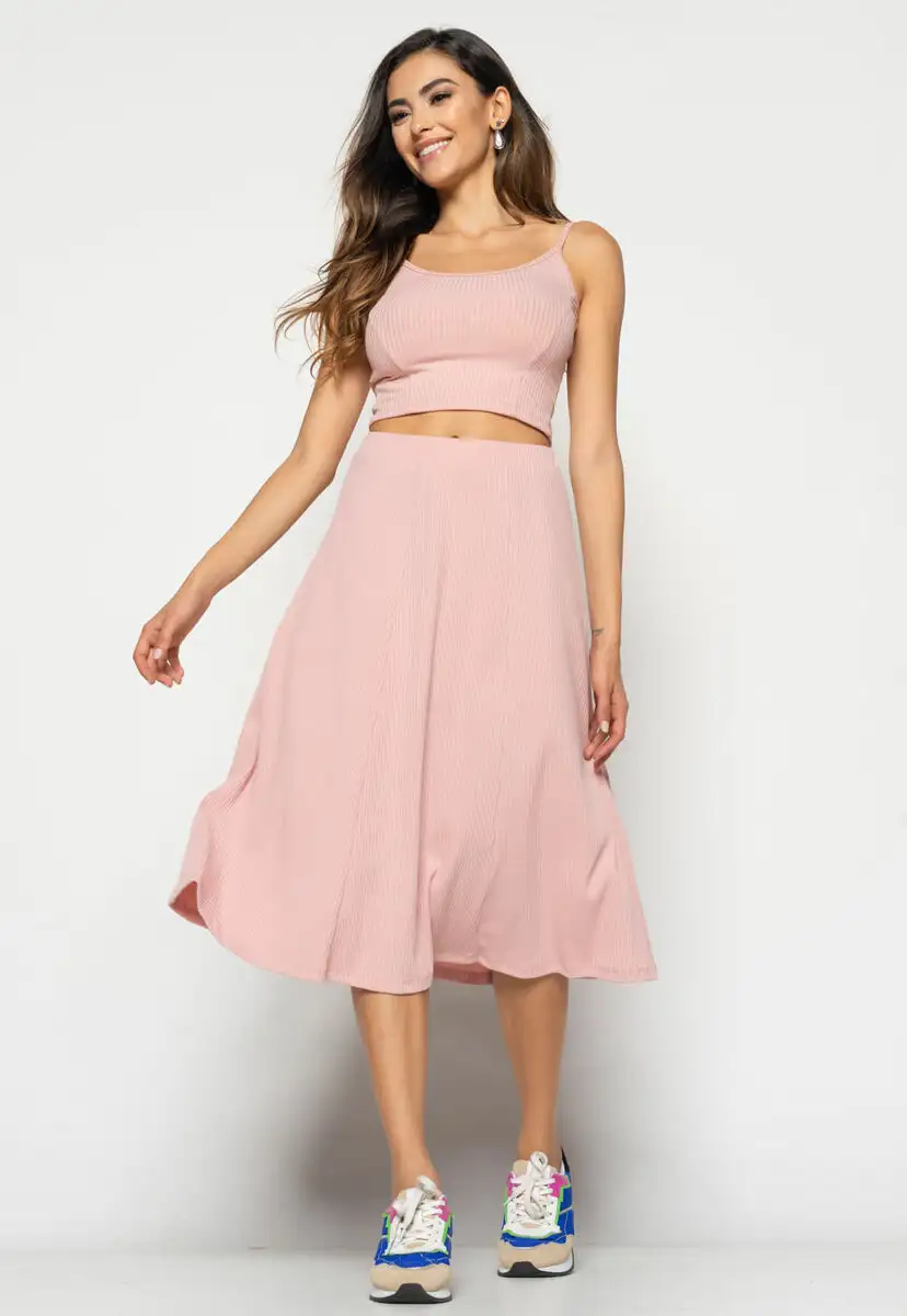 Cropped Alça Fina Canelado Rosa Claro Salvatore Fashion