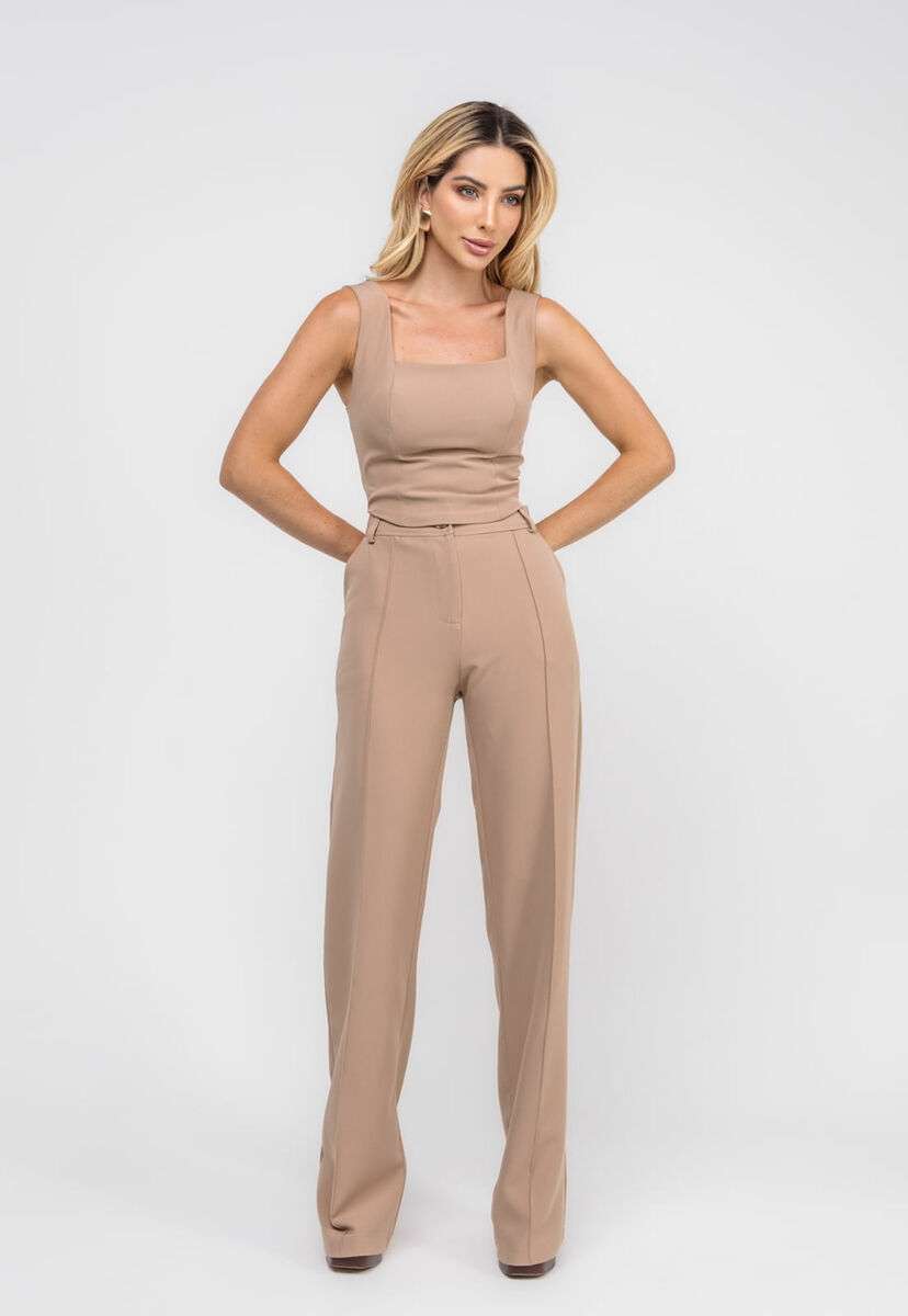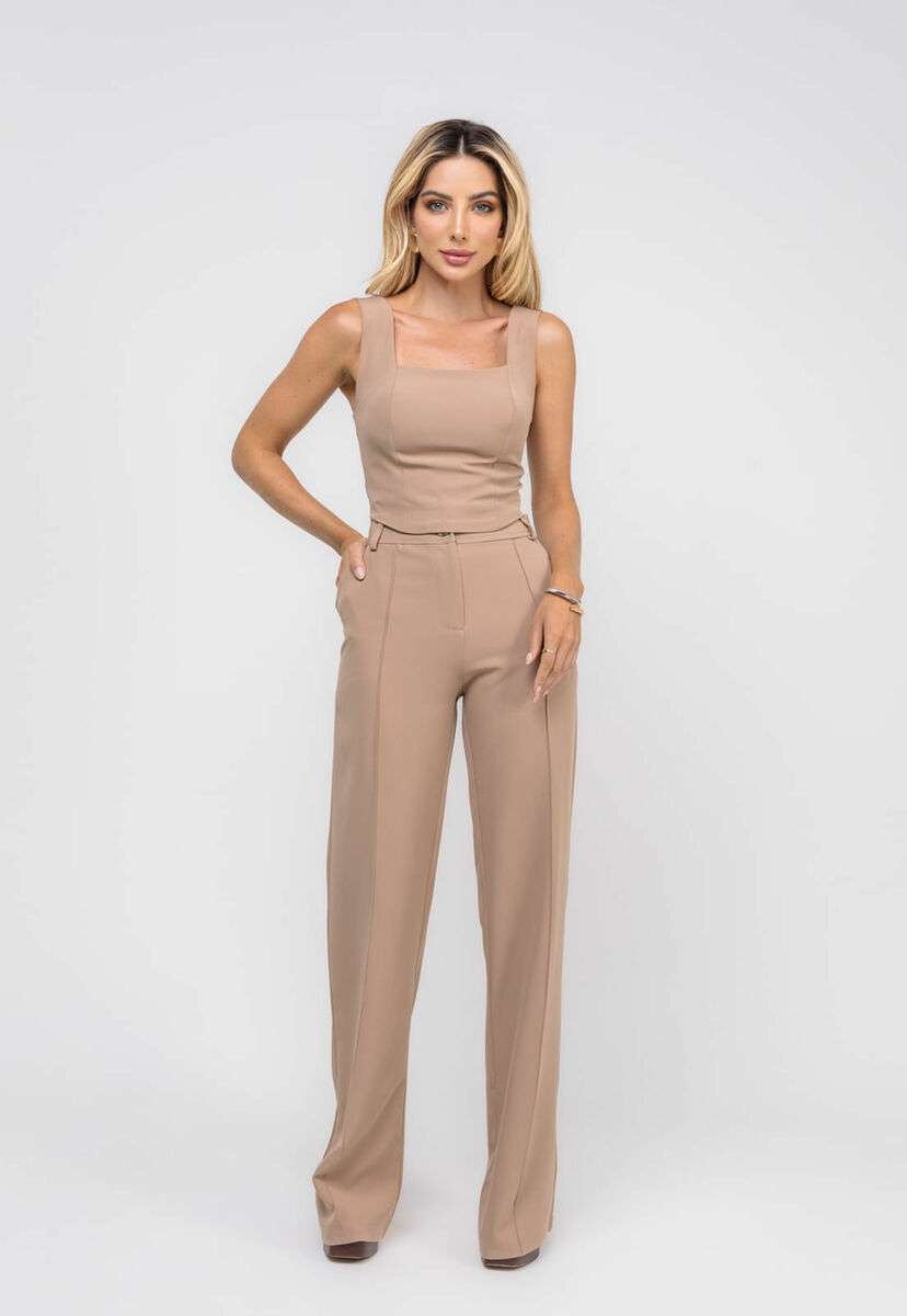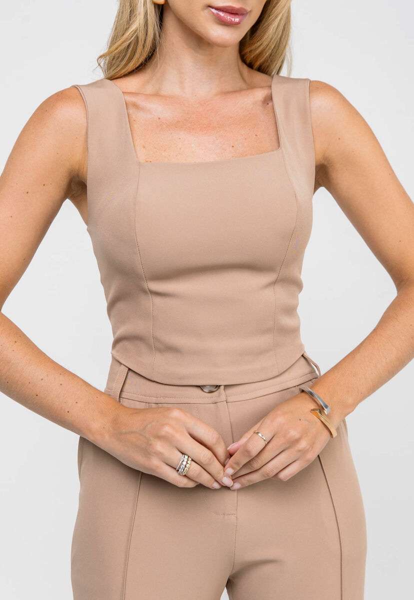 Cropped Alfaiataria Com Decote Reto Bege Salvatore