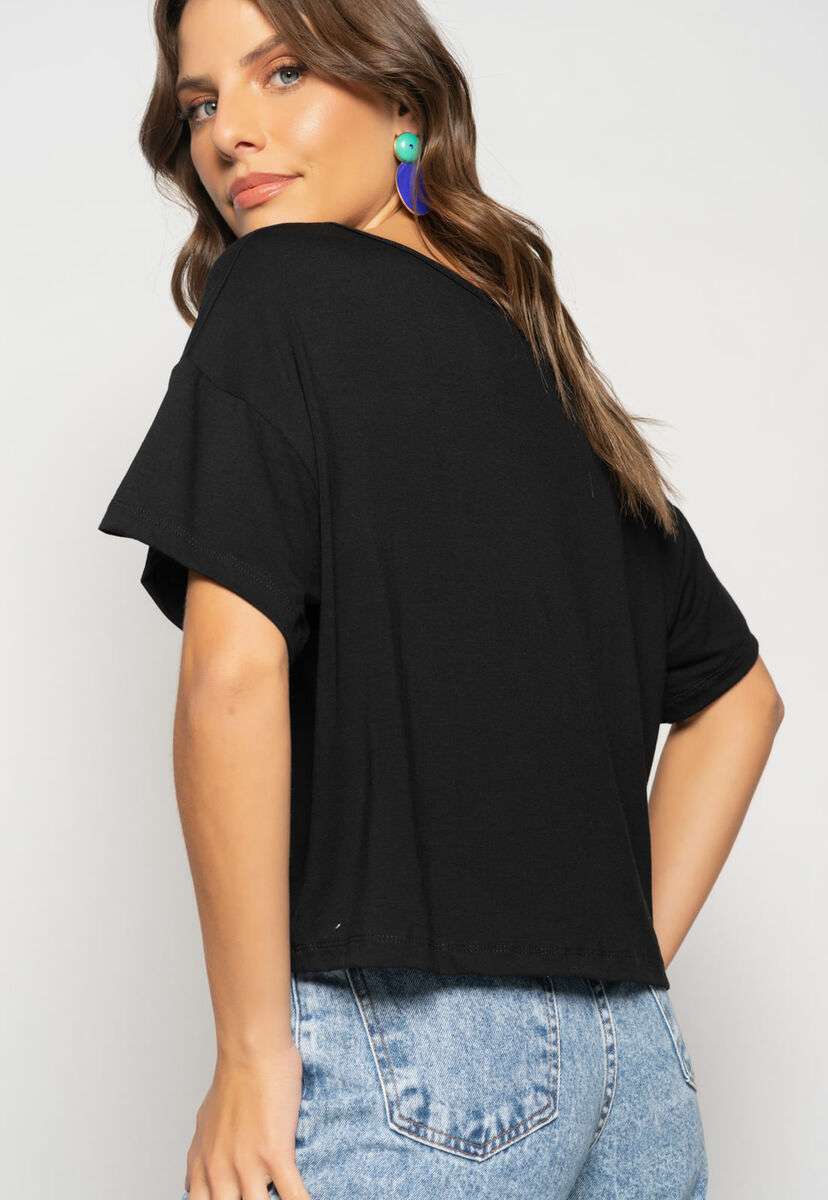 Cropped Amplo Manga Curta Malha Preto Salvatore
