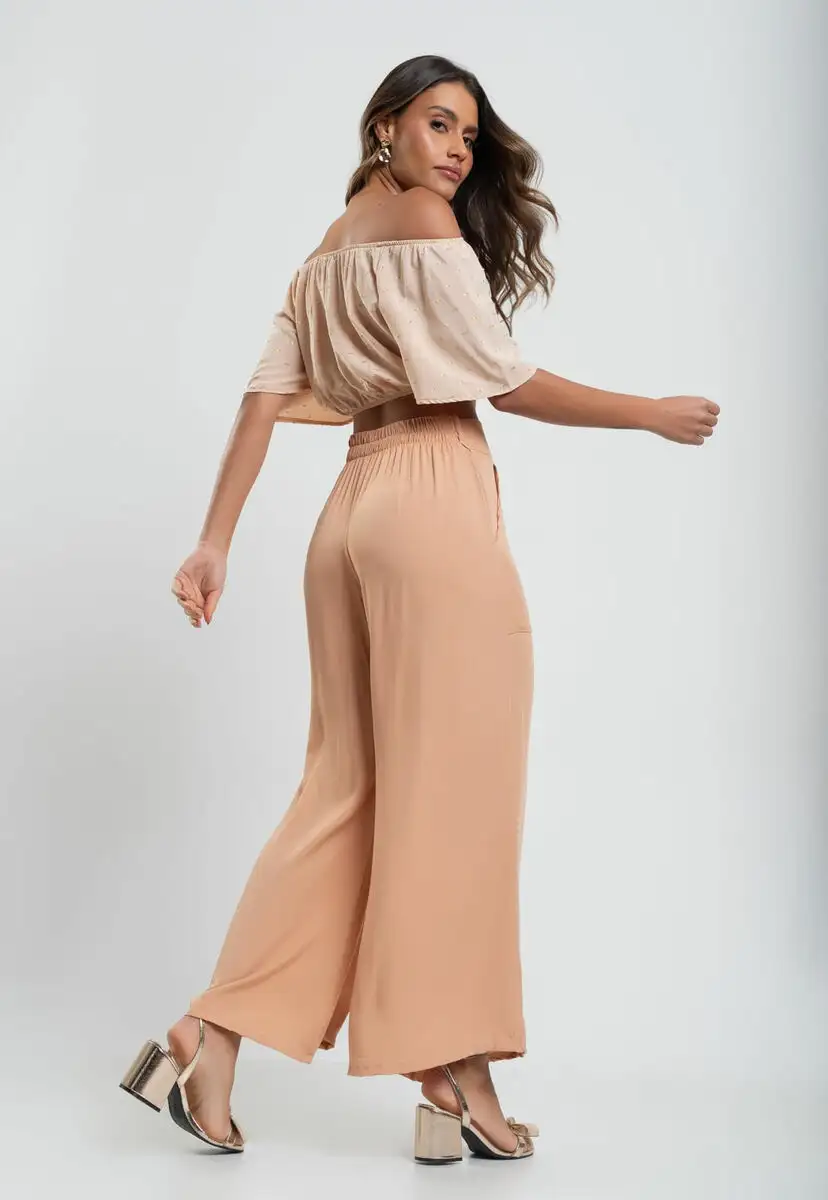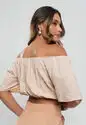Cropped Ciganinha Viscose Com Lurex Bege Salvatore Fashion