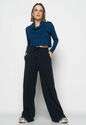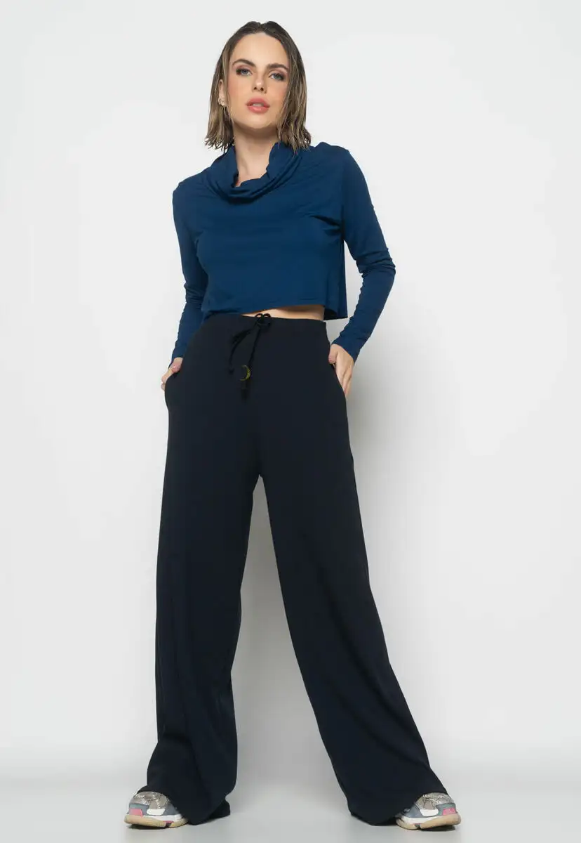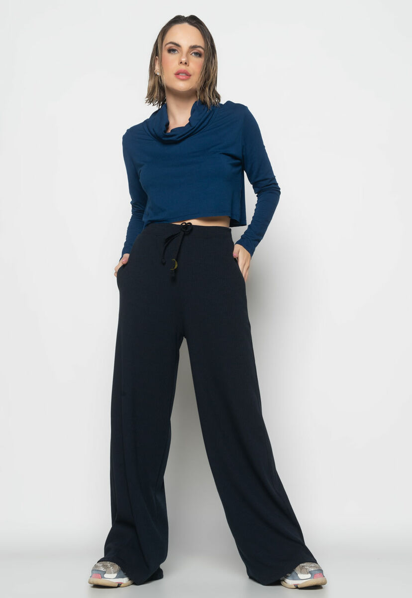 Cropped Golão Manga Longa Malha Fashion Azul