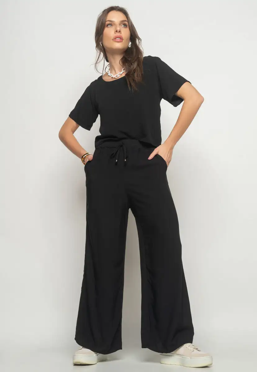 Cropped Gola Canoa Viscolinho Preto Salvatore Fashion