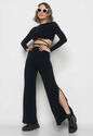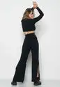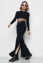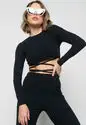 Cropped Gola Redonda Manga Longa Com Tiras Malha Canelada Fashion Preto