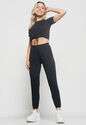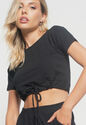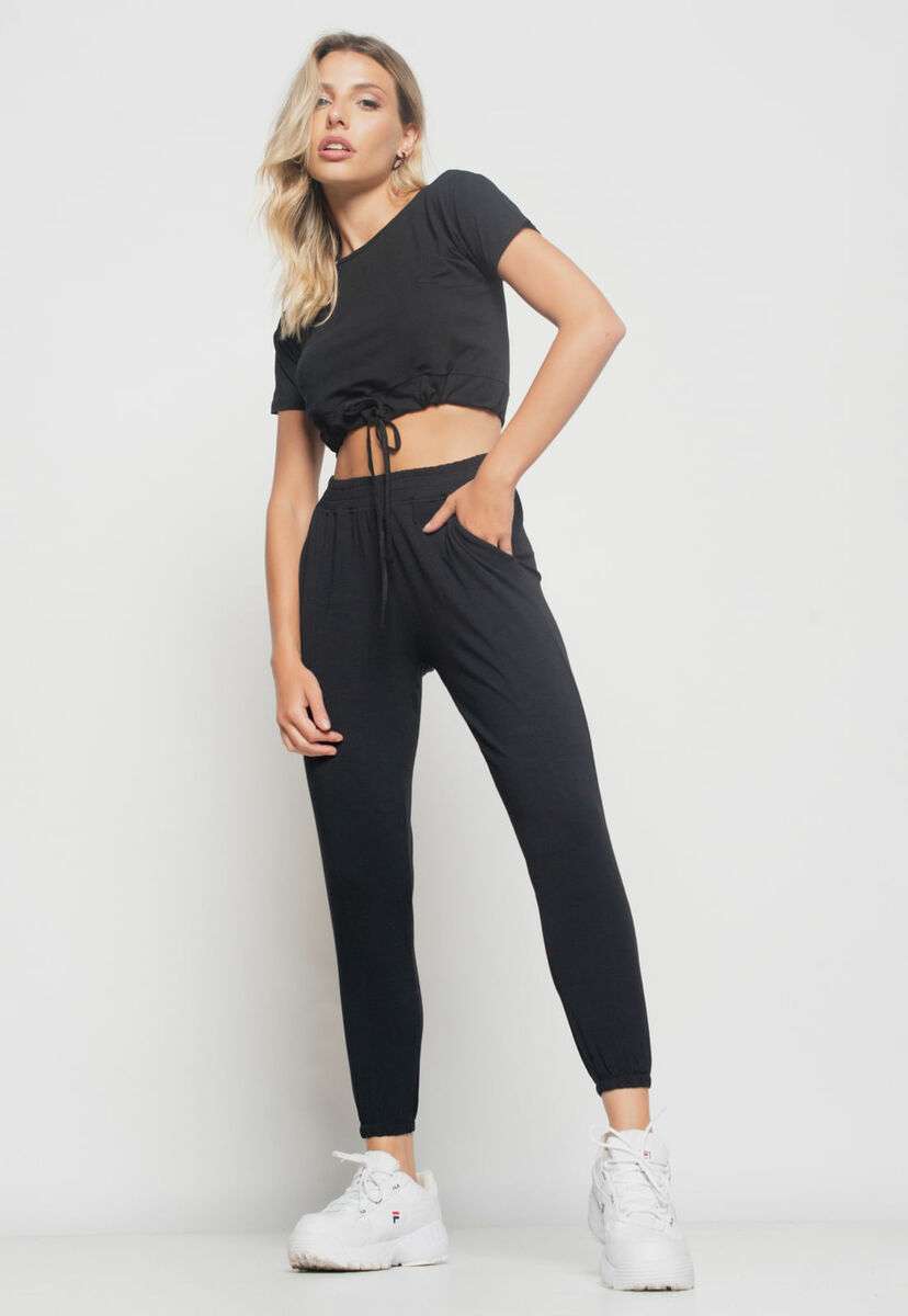 Cropped Manga Curta Com Cadarço Malha Preto Salvatore Fashion