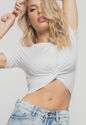 Cropped Manga Curta Com Detalhe Nó Malha Branco Salvatore Fashion