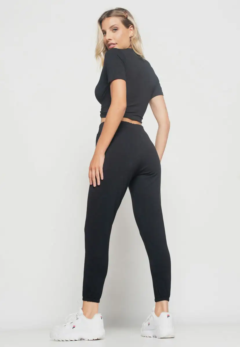 Cropped Manga Curta Com Detalhe Nó Malha Preto Salvatore Fashion