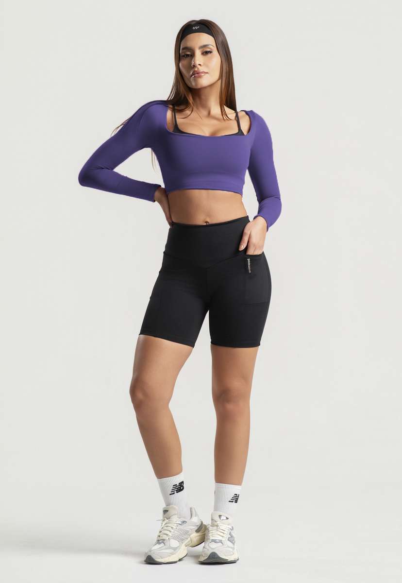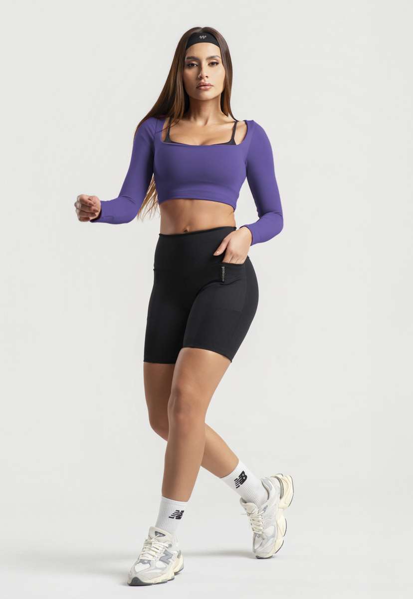 Cropped Manga Longa Decote Quadrado Roxo Wemood