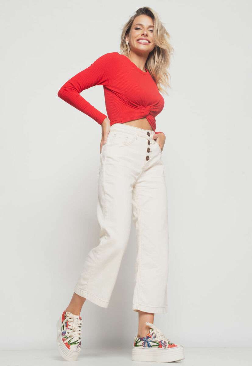 Cropped Nó Manga Longa Canelada Vermelho Salvatore Fashion