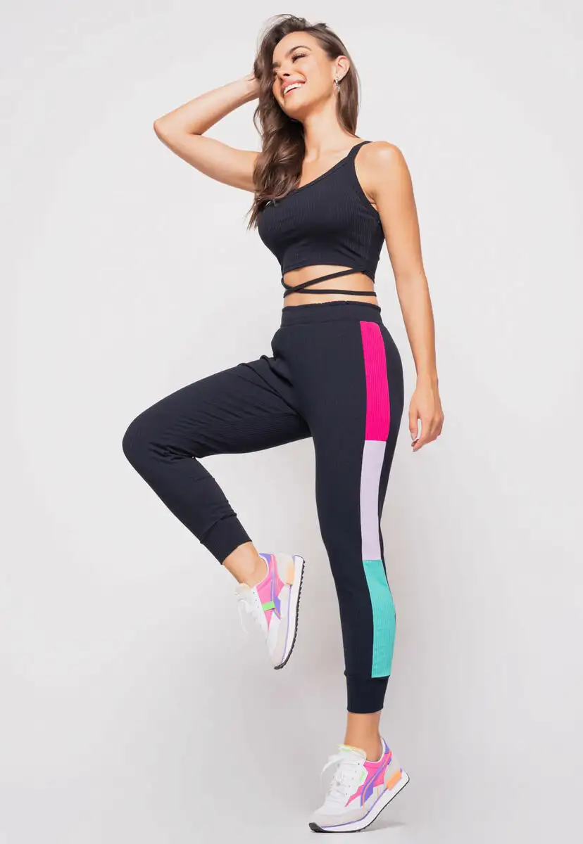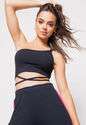 Cropped Ombro Único Com Tiras Malha Canelada Preto