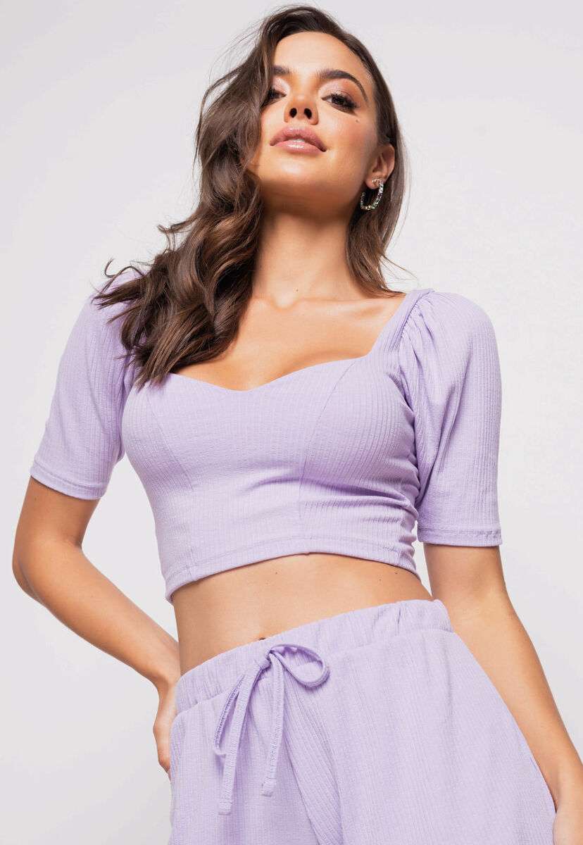 Cropped Princesa Decote Coração Malha Canelada Lilás Salvatore Fashion