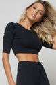 Cropped Princesa Gola Redonda Malha Canelada Preto Salvatore Fashion