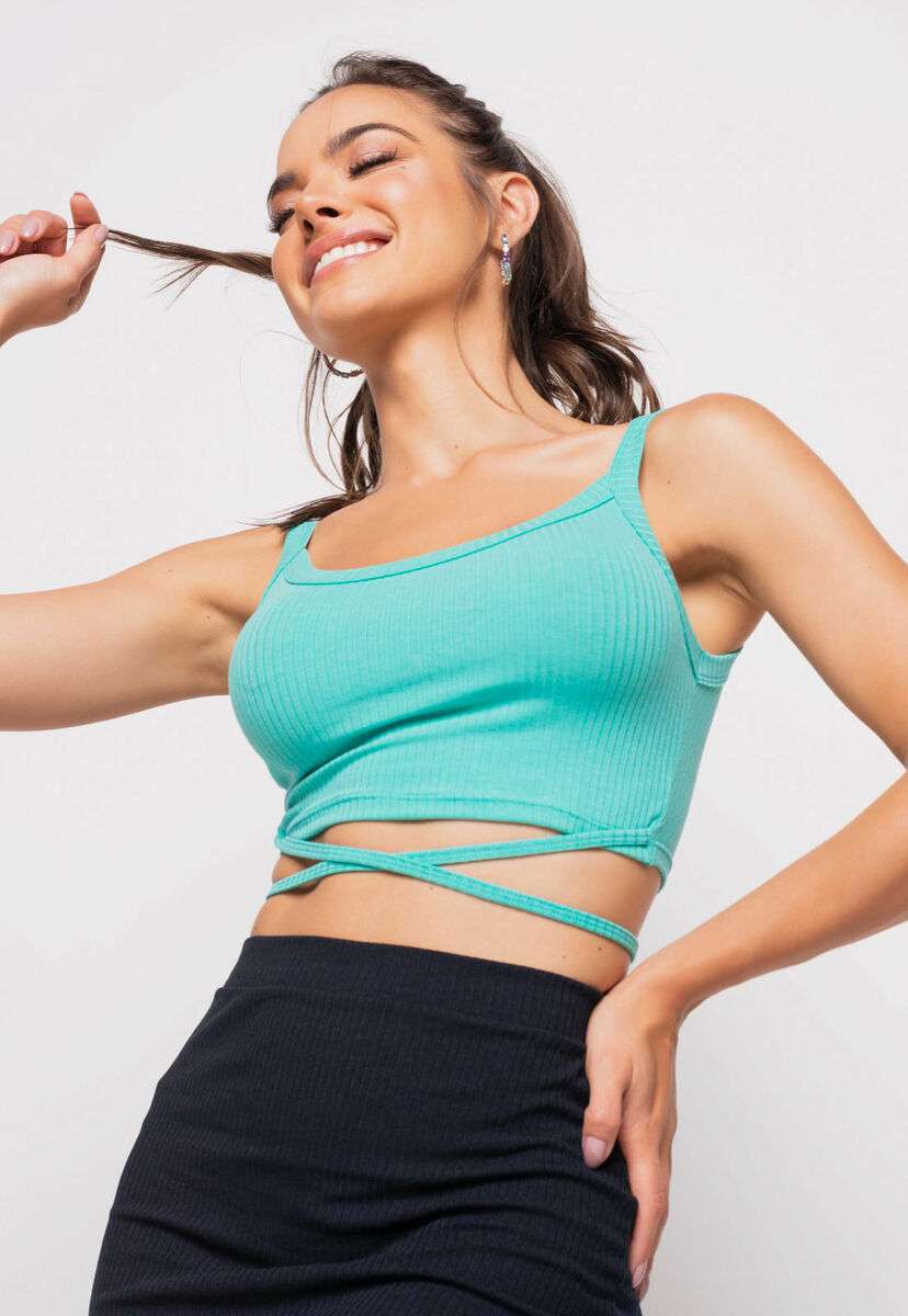 Cropped Regata Com Tiras Malha Canelada Verde