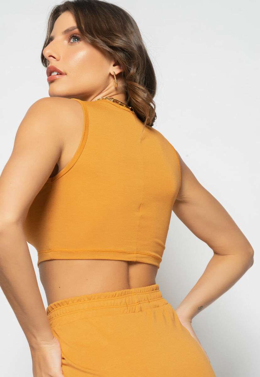 Cropped Regata Recorte Malha Caramelo Salvatore Fashion