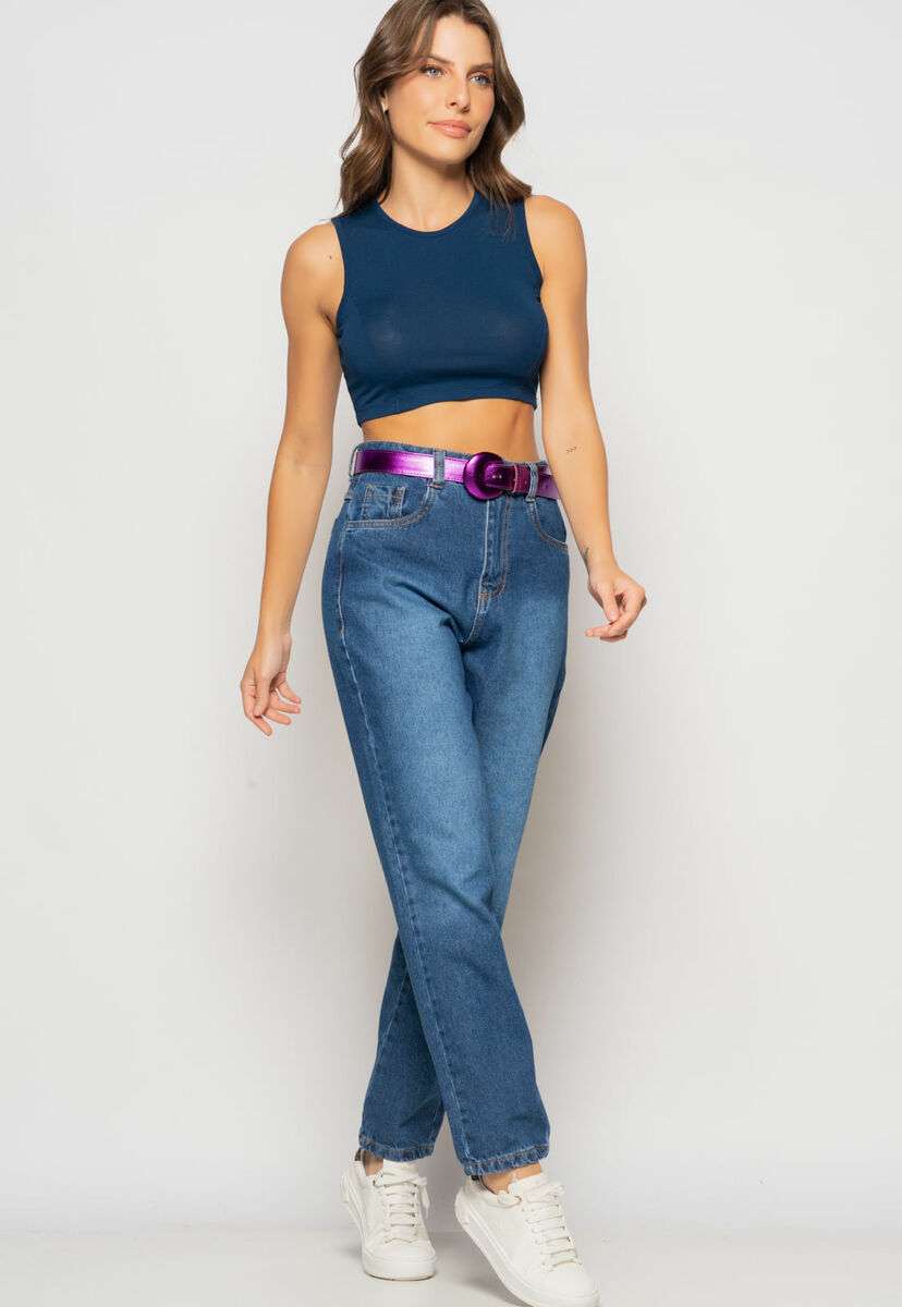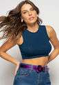 Cropped Regata Recorte Malha Marinho Salvatore Fashion