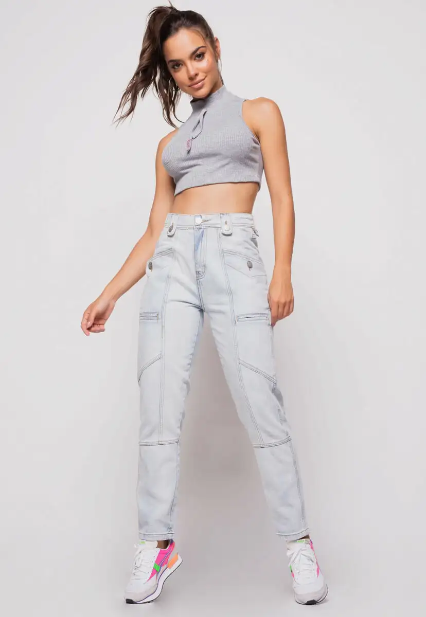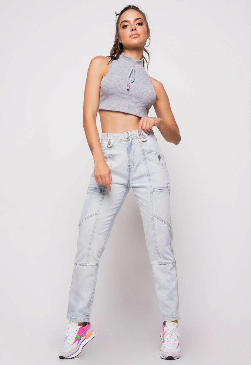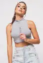 Cropped Regata Sport Cadarço Gola Malha Canelada Mescla