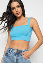 Cropped Top Faixa Comfy Malha Canelada Azul Claro Salvatore Fashion