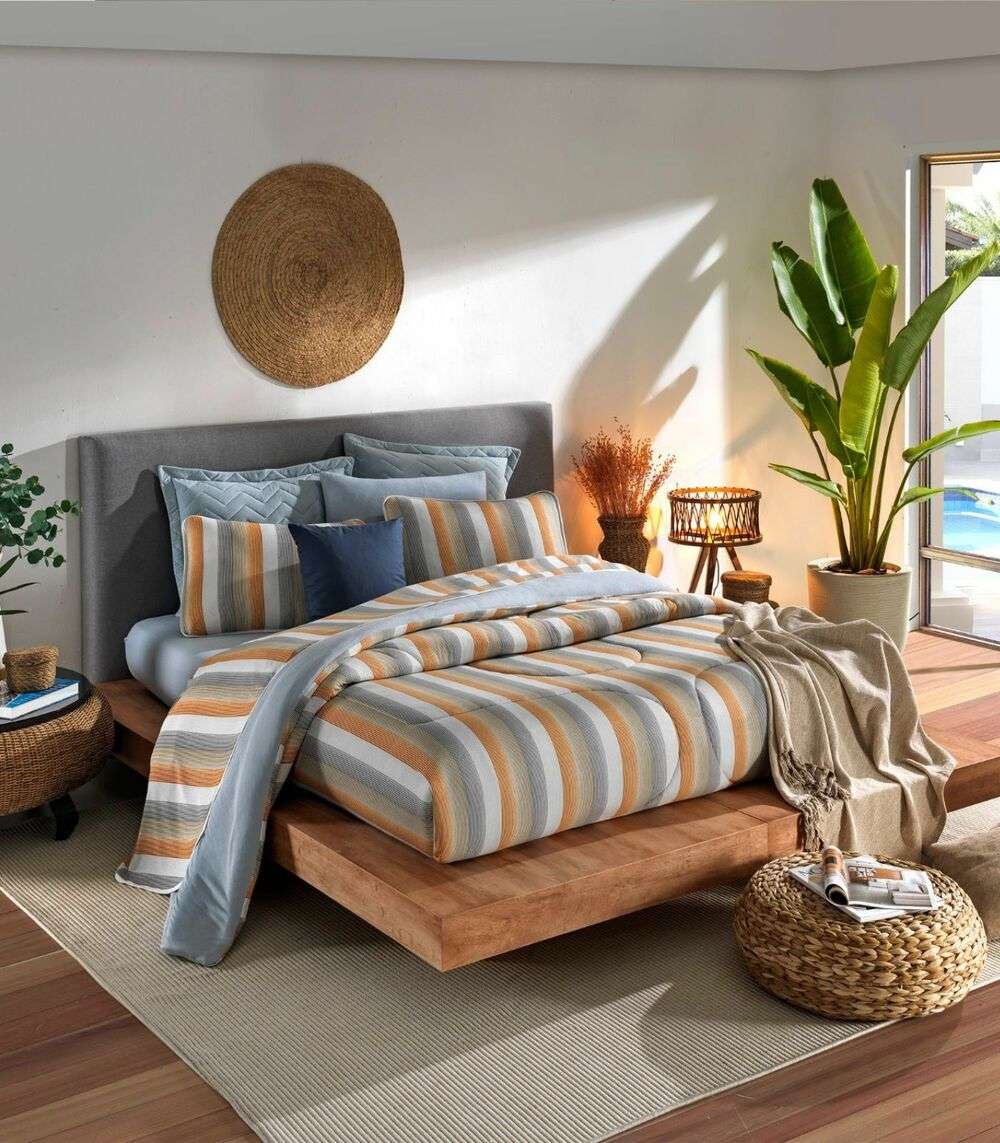Edredom Solteiro Estampado Feito em malha 100% algodão com fio penteado 30/1 120g/m² e um irresistível acolchoado, nosso edredom é perfeito para o clima tropical trazendo maciez e conforto tanto no Verão quanto no Inverno. O toque natural do algodão contribui para um tecido mais suave, prático e uma sensação agradável para te abraçar e envolver enquanto dorme. Acabamento com bordado serpentina que faz com que o enchimento permaneça no lugar por mais tempo.