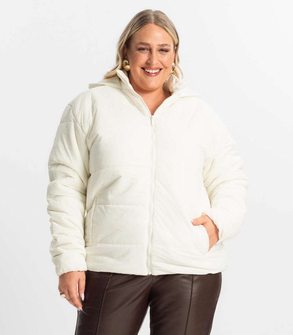 Jaqueta Com Capuz Feminina Plus Size Secret Glam Bege