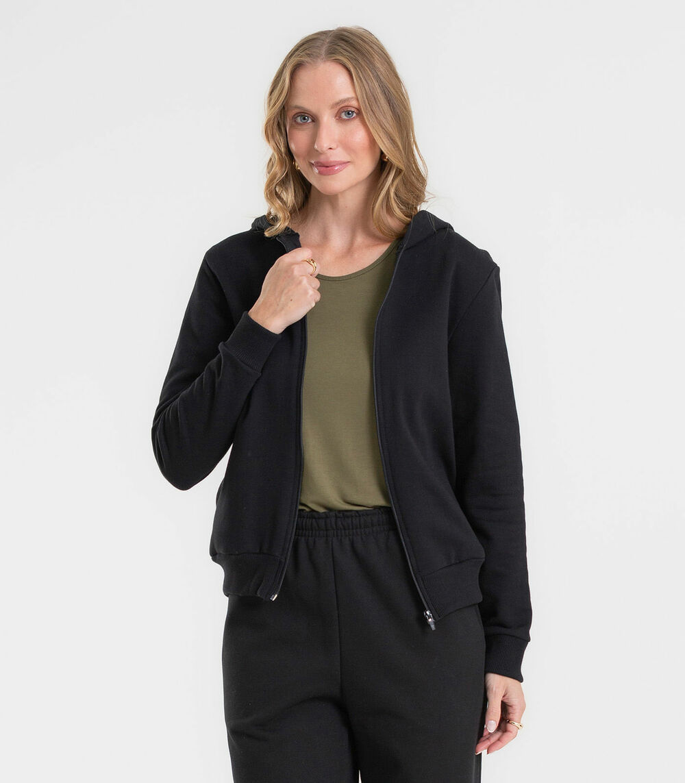Jaqueta Feminina Básica Moletom Peluciado Rovitex Preto