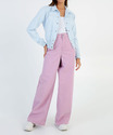 Jaqueta feminina, confeccionada em tecido plano jeans. Possui gola dobrável, fechamento por botões no entremeio, manga longa com elástico e botão no punho, cós com elástico, acabamento e costura em tom contrastante.