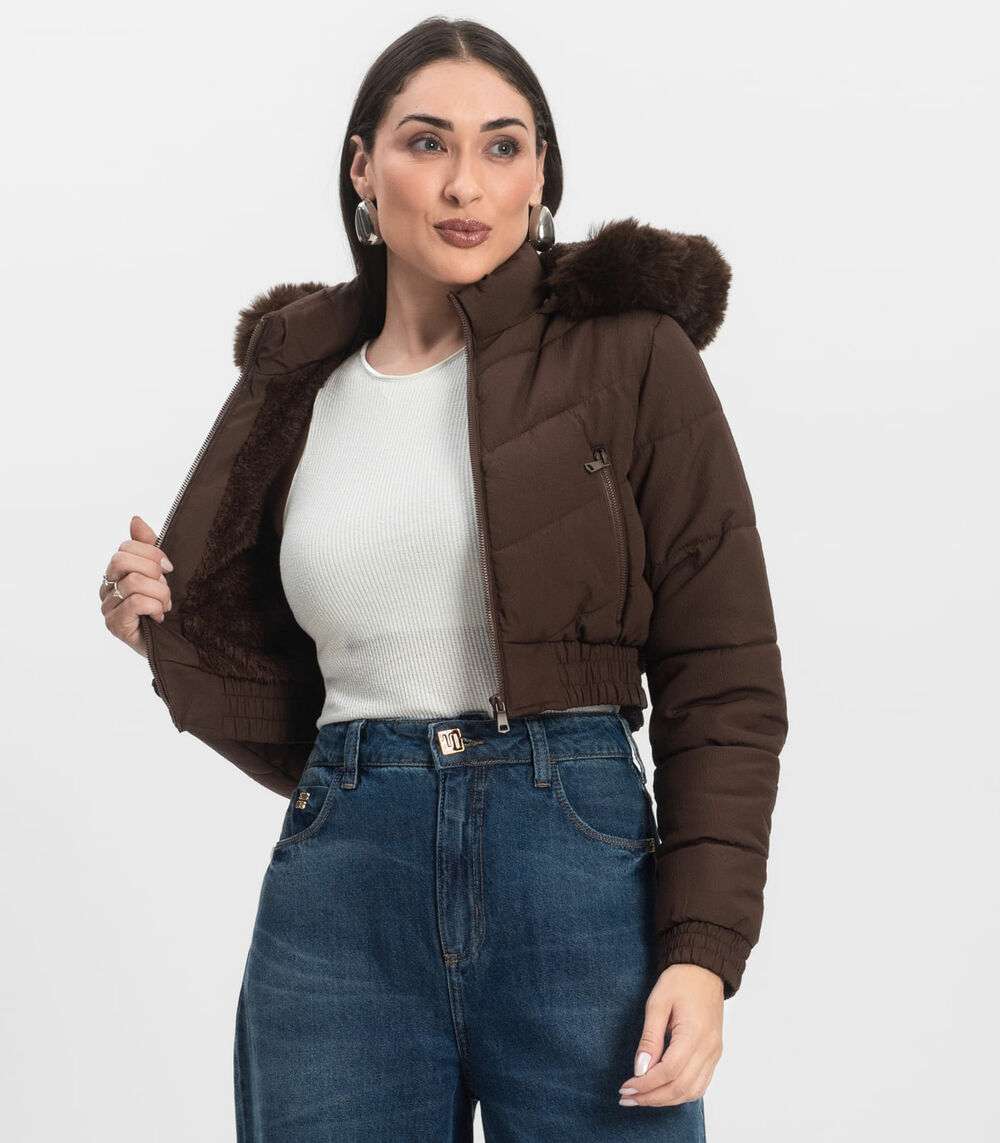 Jaqueta Feminina Peluciada Com Capuz Sea Surf Marrom