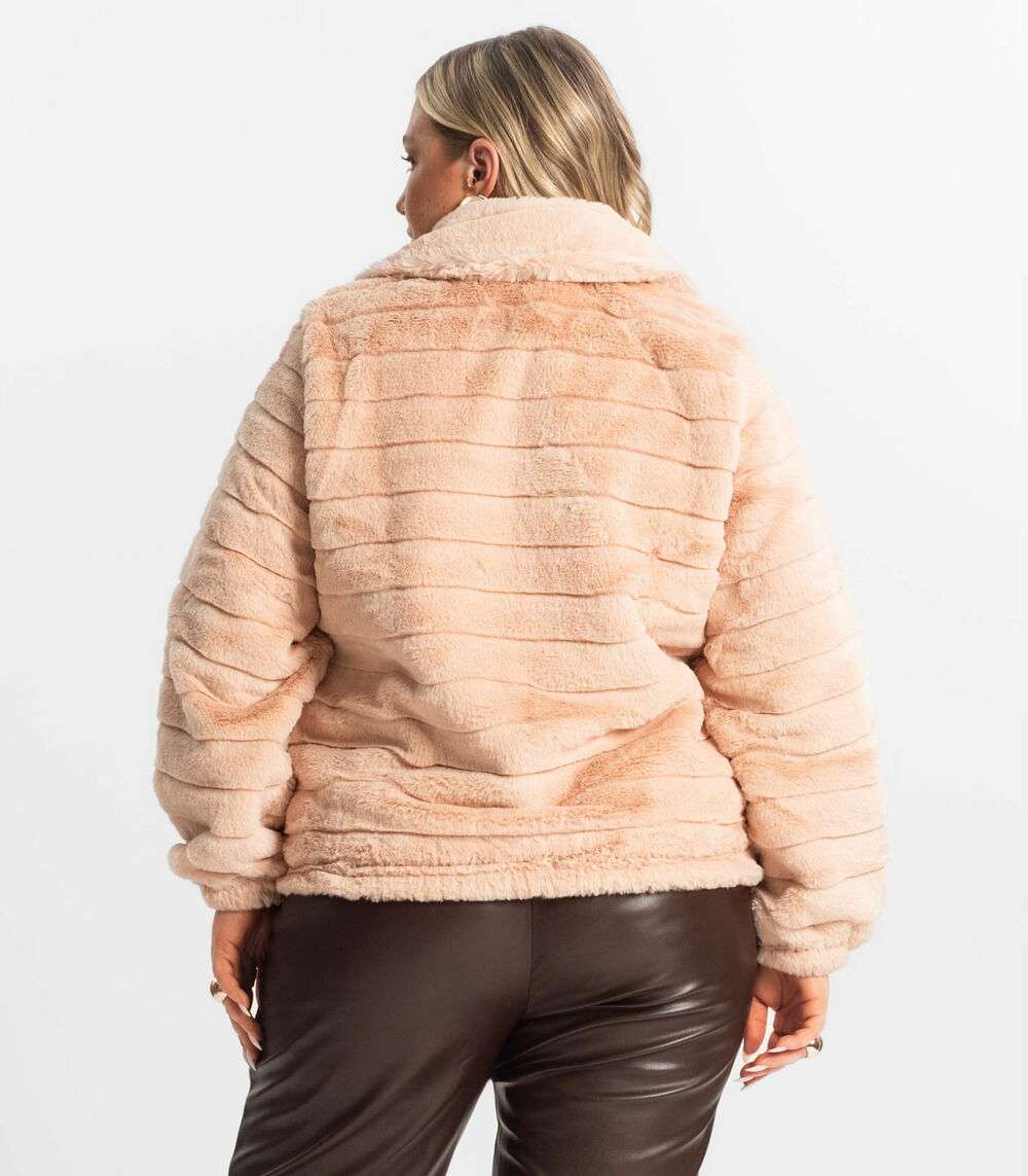 Jaqueta Feminina Plus Size Com Pelo Secret Glam Rosa