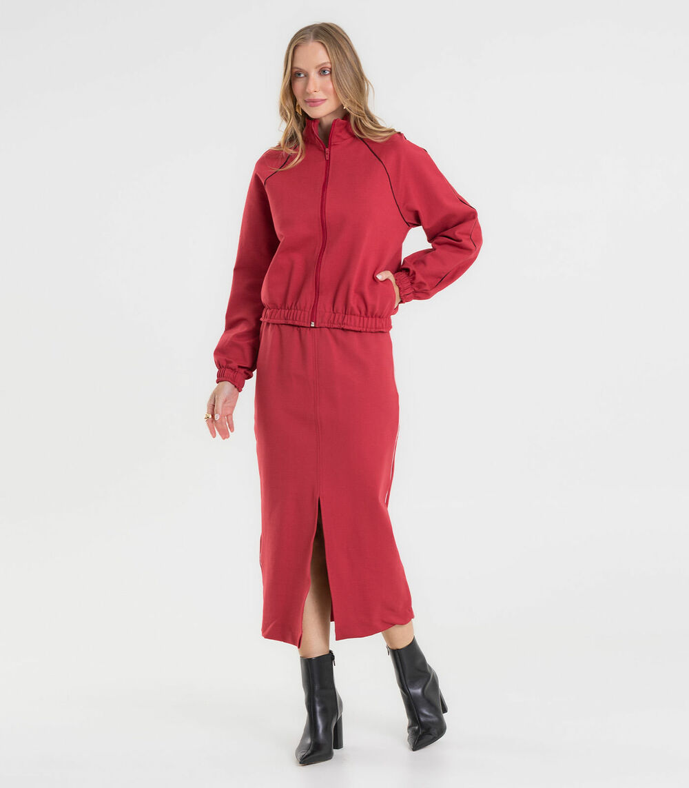 Jaqueta Feminina Ponto Roma Manga Raglan Rovitex Vermelho
