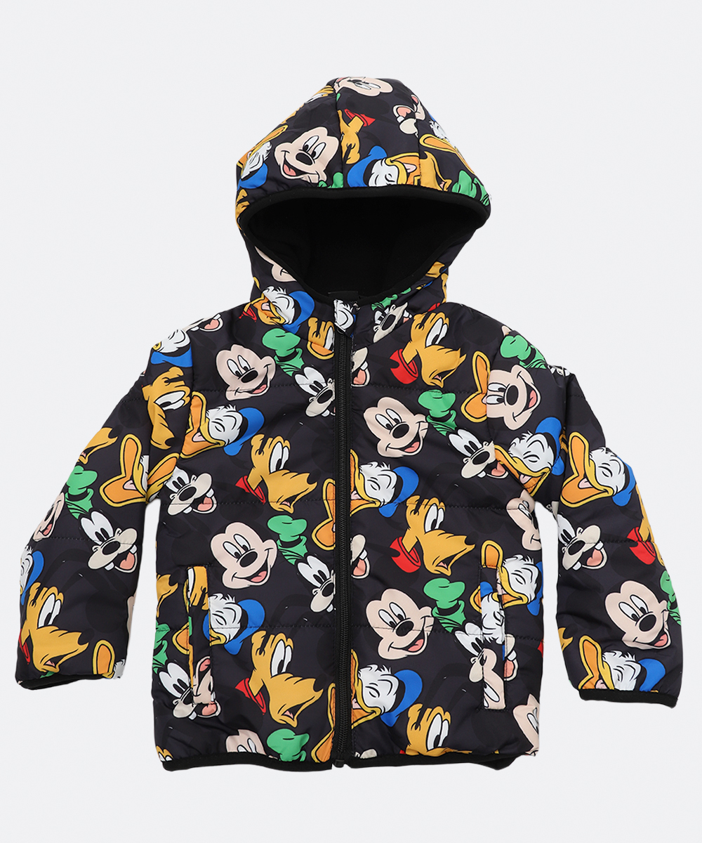 Jaqueta Infantil Puffer Capuz Mickey E Amigos Tam 1 a 3 Preto