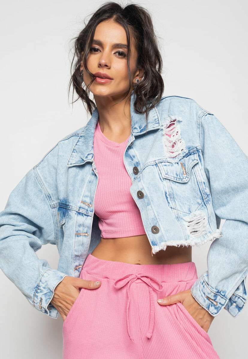 Jaqueta Jeans Cropped Oversized Salvatore Fashion