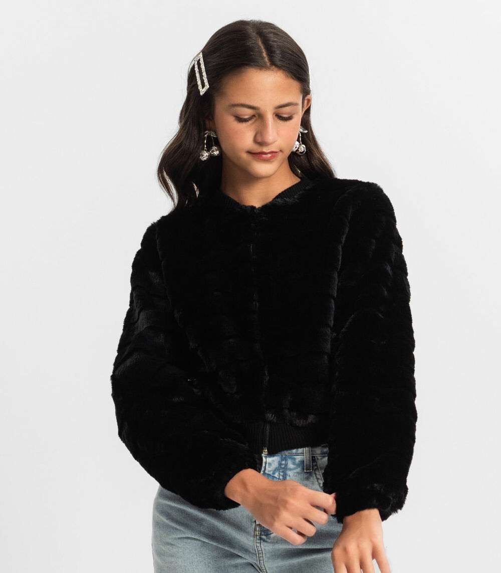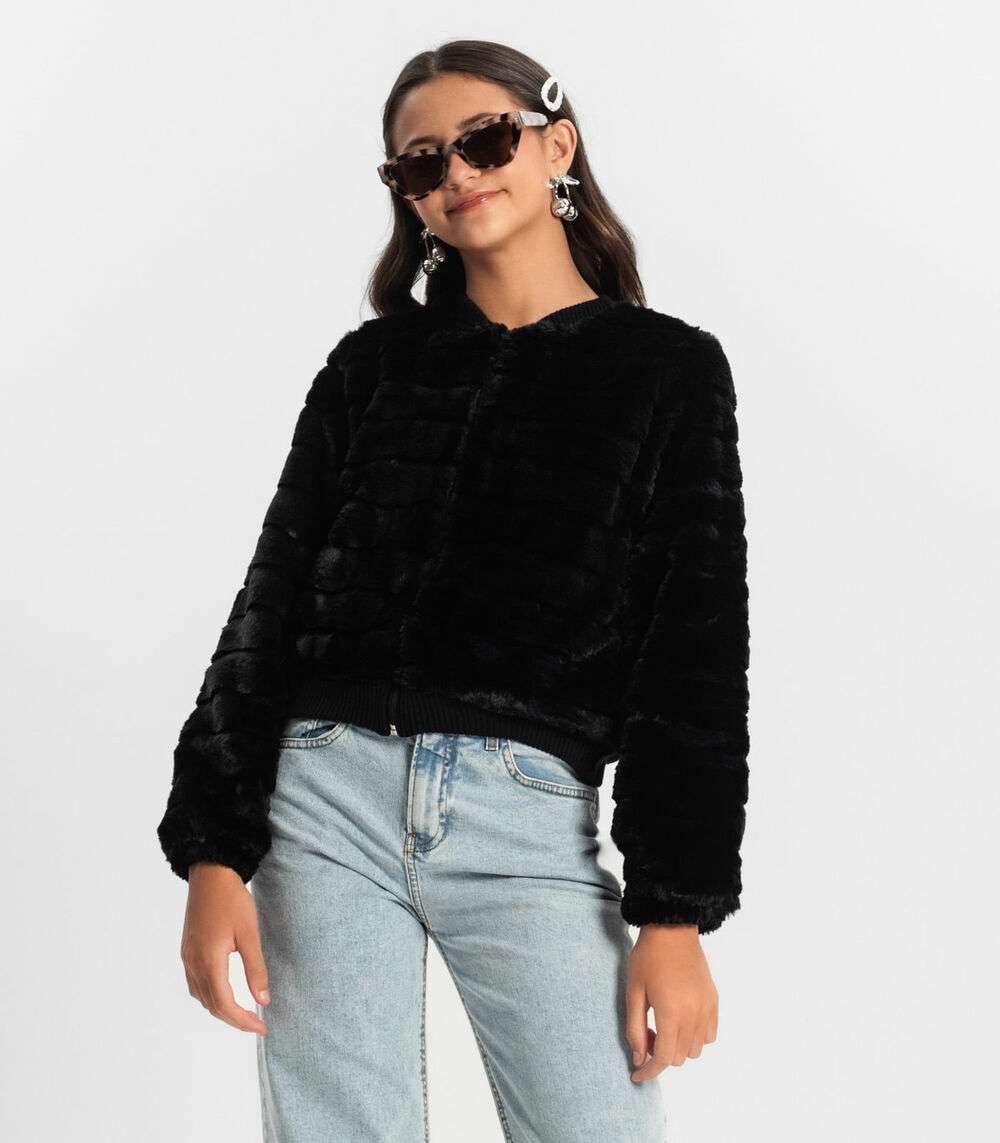 Jaqueta Juvenil Feminina Com Pelo Minty Preto