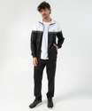 A jaqueta masculina esportiva é perfeita para quem busca um visual moderno com inspiração no streetwear. Com design em blocos de cor preto e branco, a peça traz estilo e versatilidade para o dia a dia.