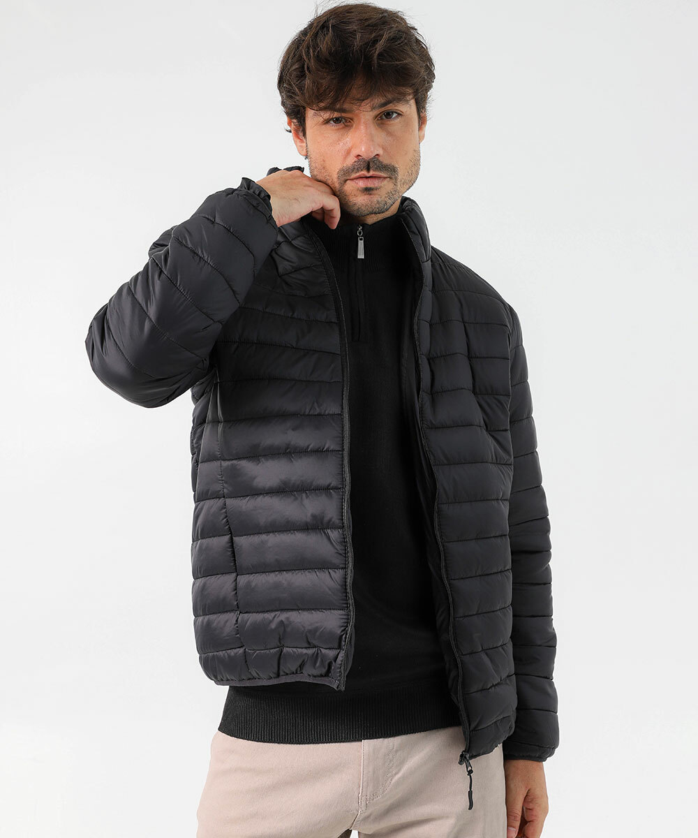 Jaqueta Masculina Puffer Bolsos MR Preto